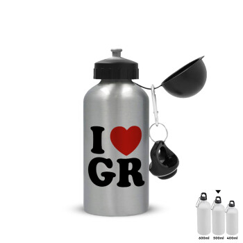 I Love GR, Metallic water jug, Silver, aluminum 500ml