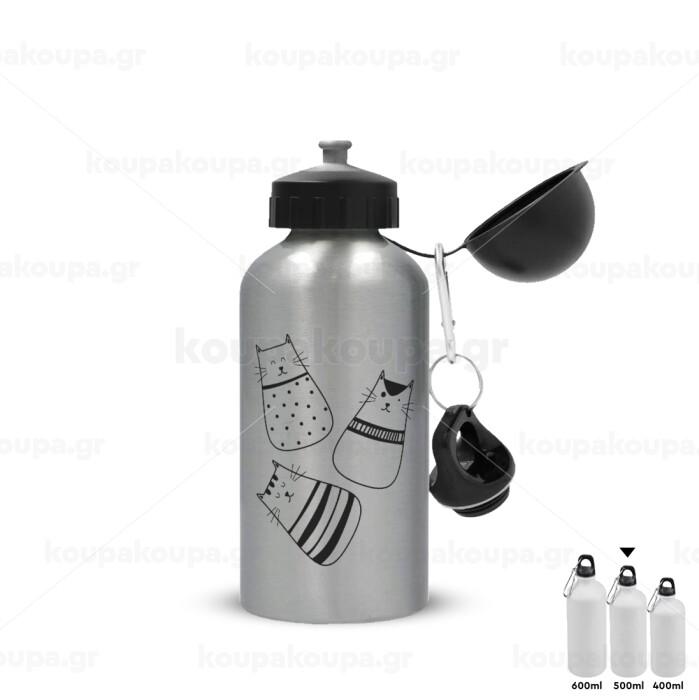 Cute cats, Metallic water jug, Silver, aluminum 500ml