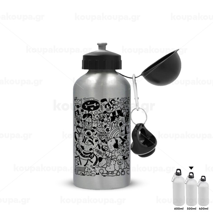 DOG pattern, Metallic water jug, Silver, aluminum 500ml