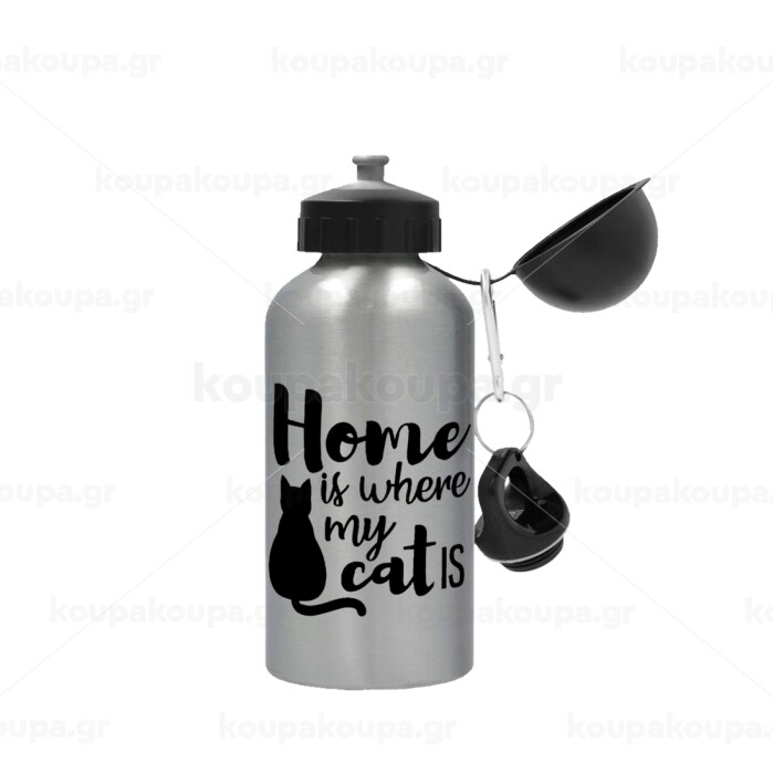 Home is where my cat is!, Metallic water jug, Silver, aluminum 500ml