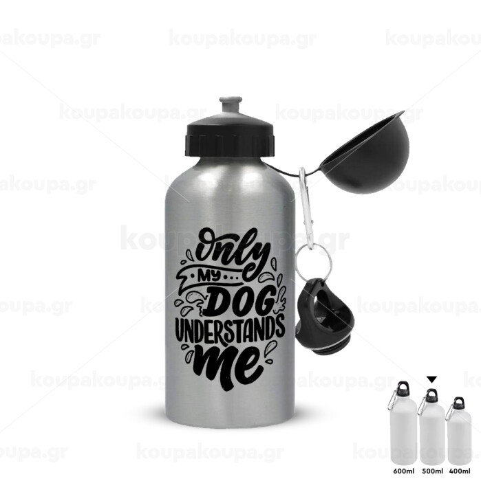 Only my DOG, understands me, Metallic water jug, Silver, aluminum 500ml