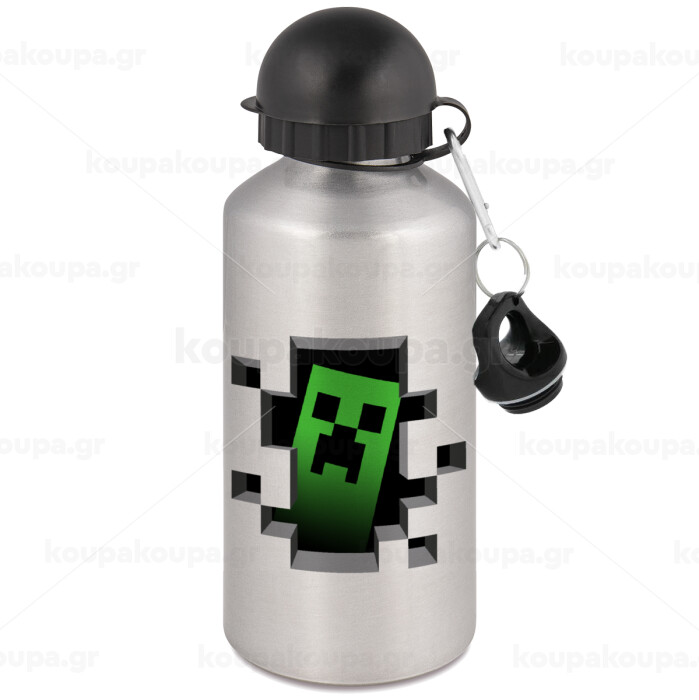 Minecraft creeper, Metallic water jug, Silver, aluminum 500ml