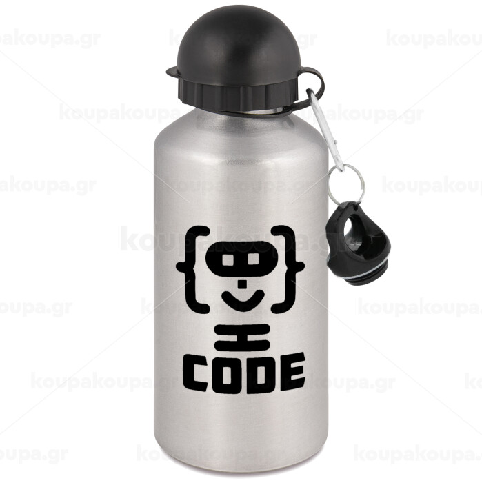 Code Heroes symbol, Metallic water jug, Silver, aluminum 500ml