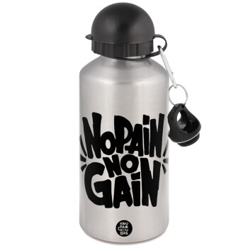 No pain no gain, Metallic water jug, Silver, aluminum 500ml