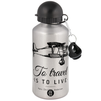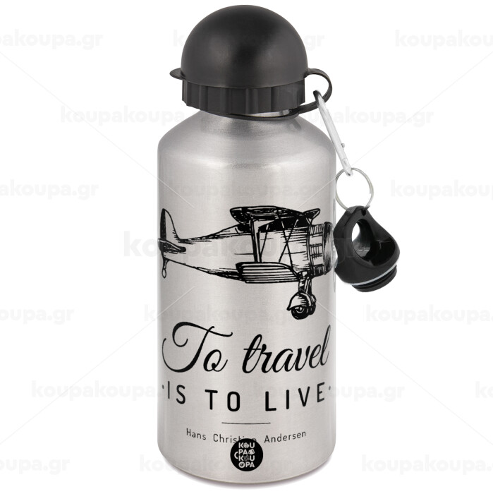 To travel is to live, Metallic water jug, Silver, aluminum 500ml