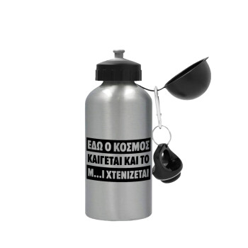 Εδώ ο κόσμος καίγεται και το Μ....Ι χτενίζεται, Metallic water jug, Silver, aluminum 500ml