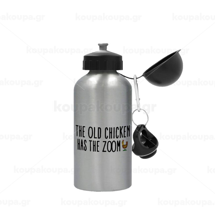 The old chicken has the zoom, Metallic water jug, Silver, aluminum 500ml