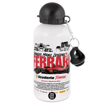 F1 Ferrari, Metal water bottle, White, aluminum 500ml