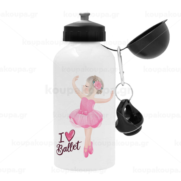 I Love Ballet, Metal water bottle, White, aluminum 500ml