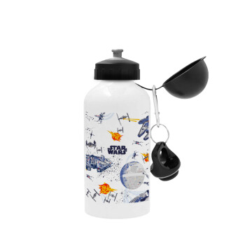 Star wars drawing, Metal water bottle, White, aluminum 500ml