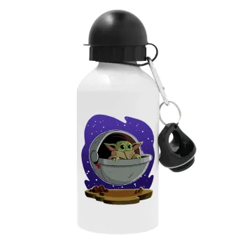 Baby Yoda mandalorian, Metal water bottle, White, aluminum 500ml