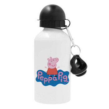 Πέππα το γουρουνάκι μπλε με όνομα, Metal water bottle, White, aluminum 500ml
