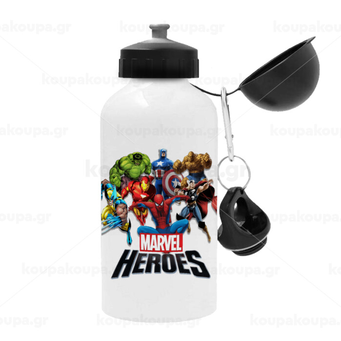 MARVEL heroes, Metal water bottle, White, aluminum 500ml