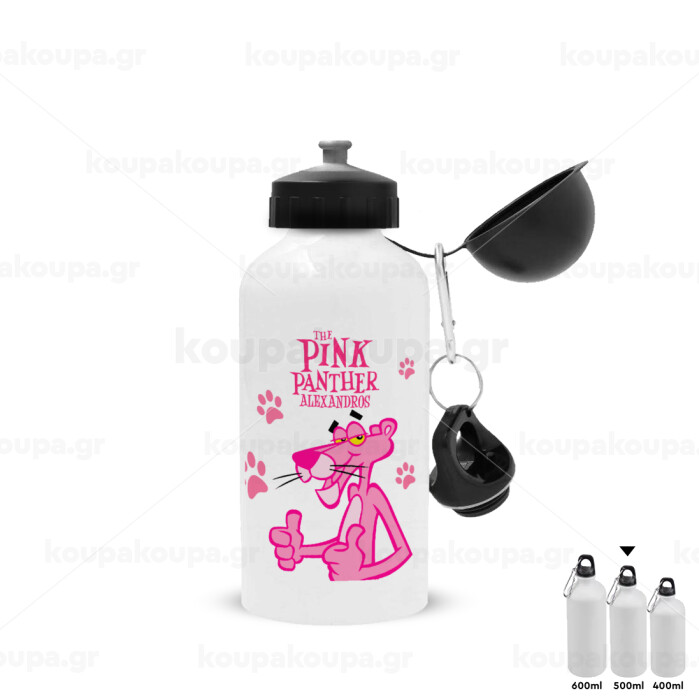 The pink panther, Metal water bottle, White, aluminum 500ml