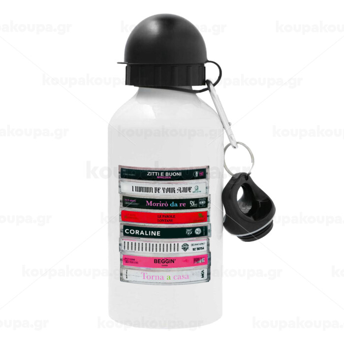 Maneskin Cassette, Metal water bottle, White, aluminum 500ml