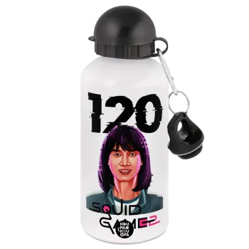Squid game 120 Cho Hyun-ju, Metal water bottle, White, aluminum 500ml