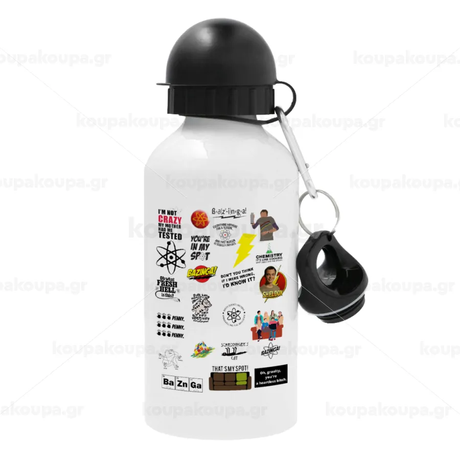 The Big Bang Theory pattern, Metal water bottle, White, aluminum 500ml