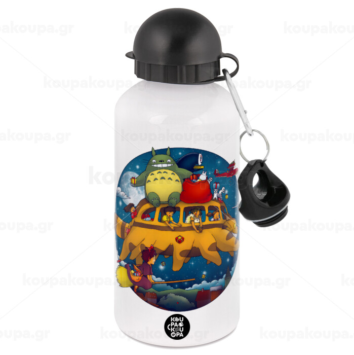 Totoro Catbus, Metal water bottle, White, aluminum 500ml
