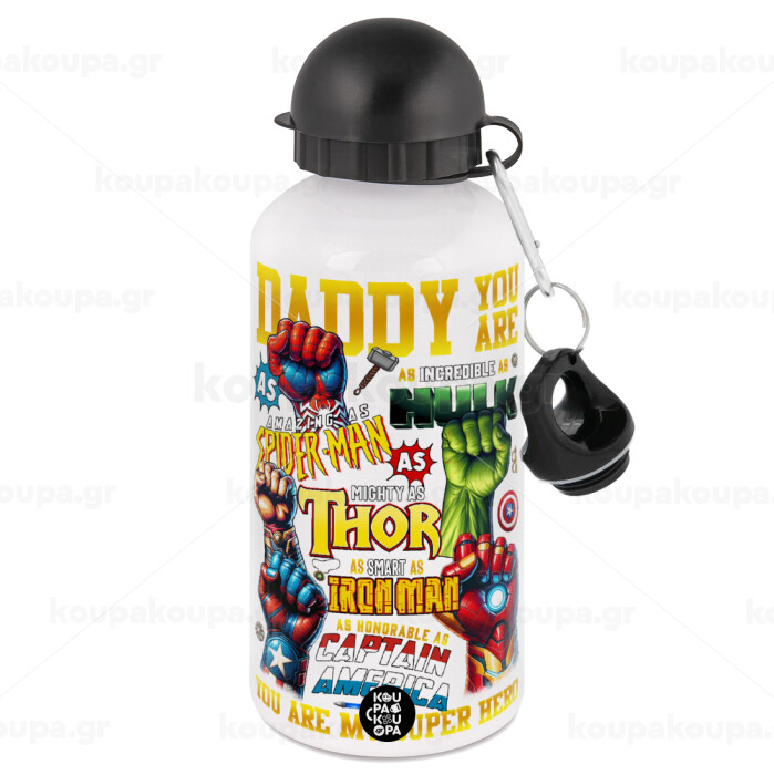 Daddy You Are my Hero, Metal water bottle, White, aluminum 500ml