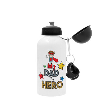 My Dad, my Hero!!!, Metal water bottle, White, aluminum 500ml