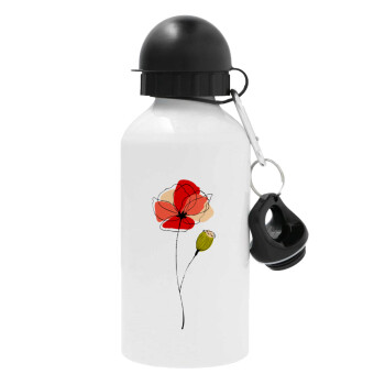 Red poppy flowers papaver, Metal water bottle, White, aluminum 500ml