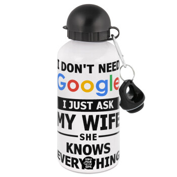 I don't need Google, just ask my WIFE, Metal water bottle, White, aluminum 500ml