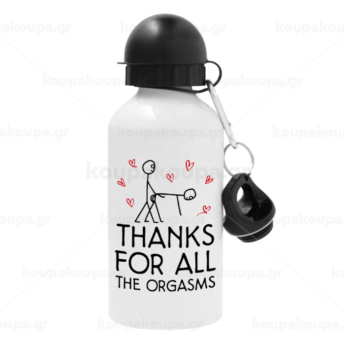 Thanks for all the orgasms, Metal water bottle, White, aluminum 500ml
