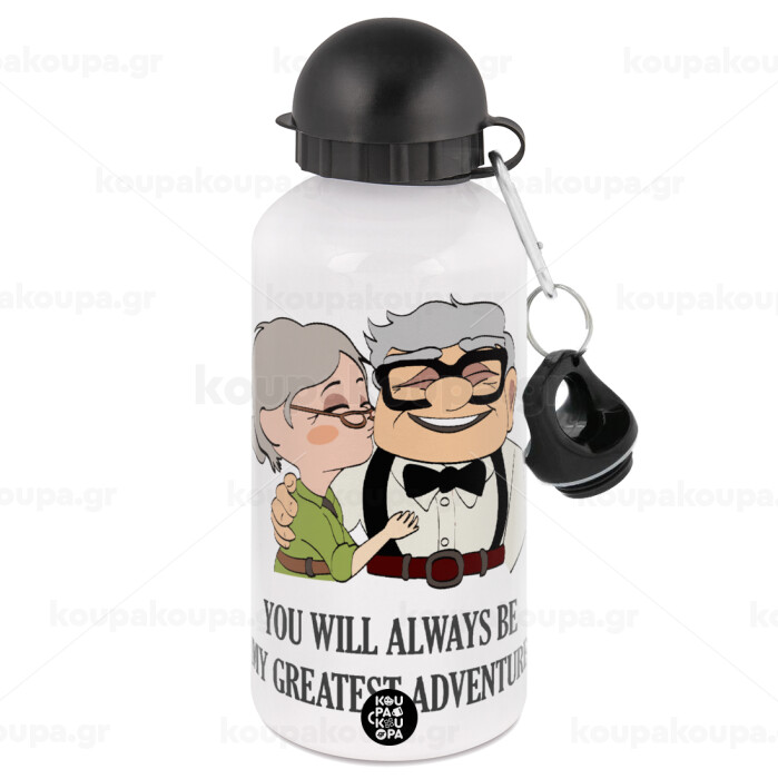 UP, YOU WILL ALWAYS BE MY GREATEST ADVENTURE, Metal water bottle, White, aluminum 500ml