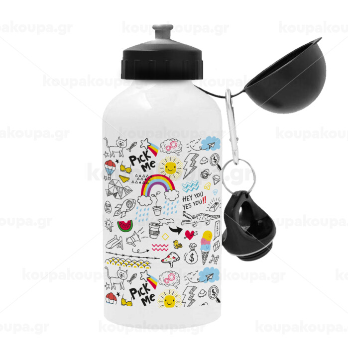 Doodle kids, Metal water bottle, White, aluminum 500ml