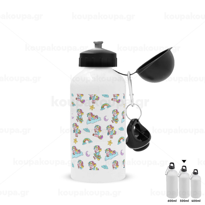 Unicorn pattern, Metal water bottle, White, aluminum 500ml