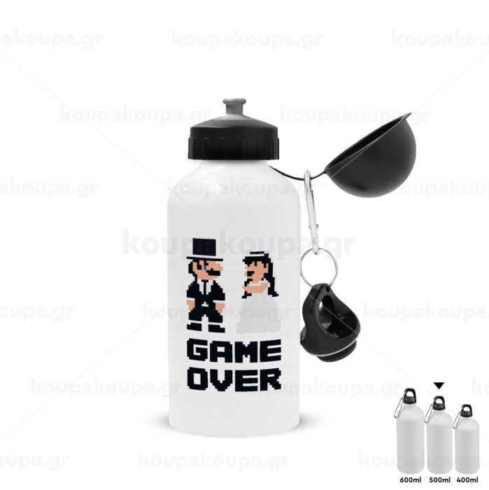 8bit Game Over Couple Wedding, Metal water bottle, White, aluminum 500ml
