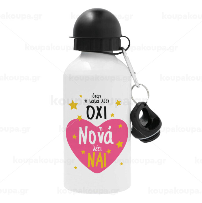 Η νονά λέει ναι!!!, Metal water bottle, White, aluminum 500ml