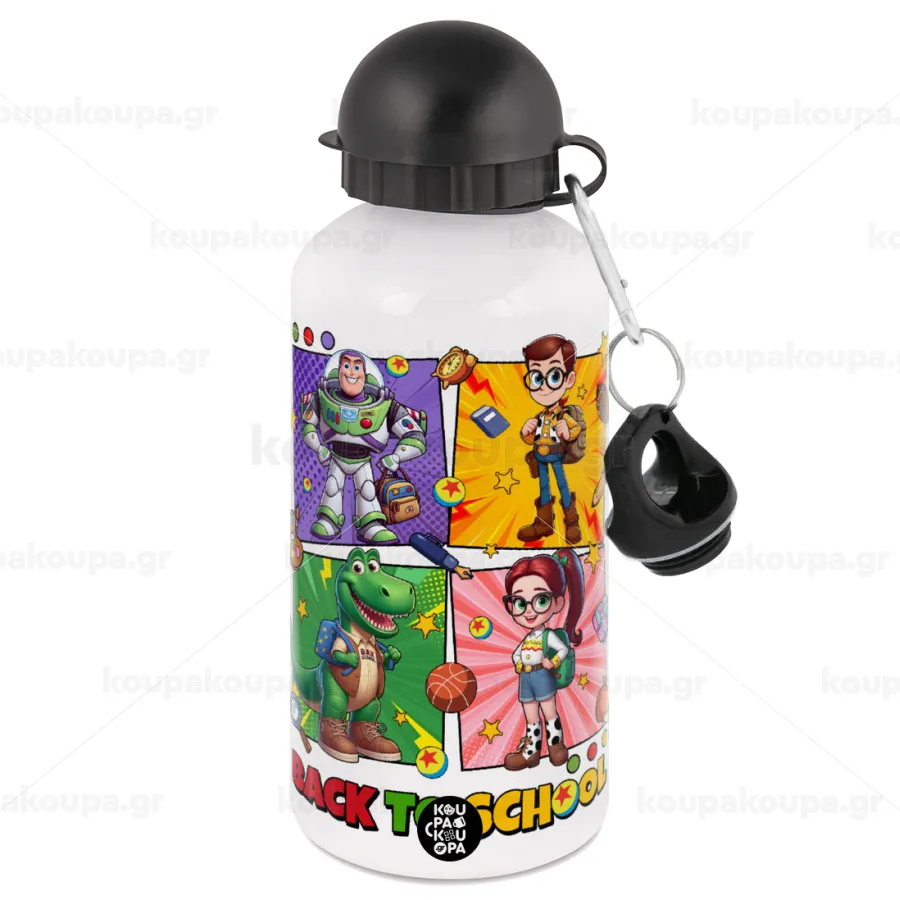 Back to the School Buzz & Friends, Metal water bottle, White, aluminum 500ml
