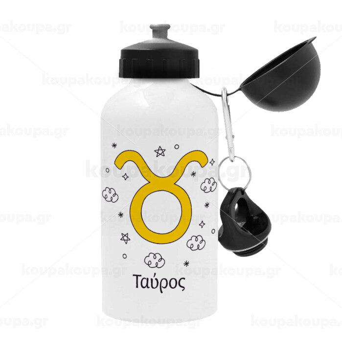 Ζώδια Ταύρος, Metal water bottle, White, aluminum 500ml