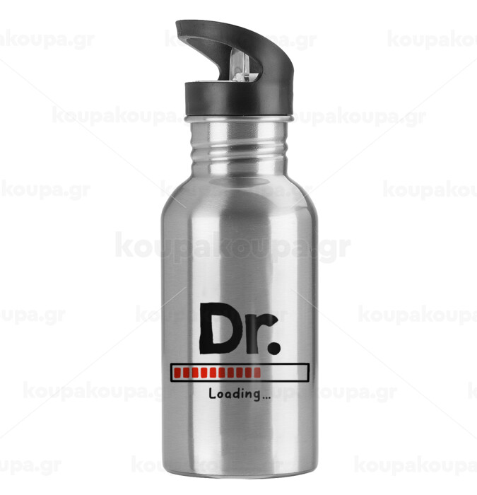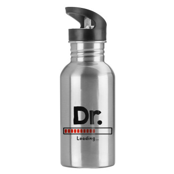 DR. Loading..., Water bottle Silver with straw, stainless steel 600ml