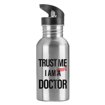 Trust me, i am (almost) Doctor, Water bottle Silver with straw, stainless steel 600ml