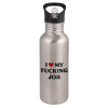 I love my fucking job, Water bottle Silver with straw, stainless steel 600ml