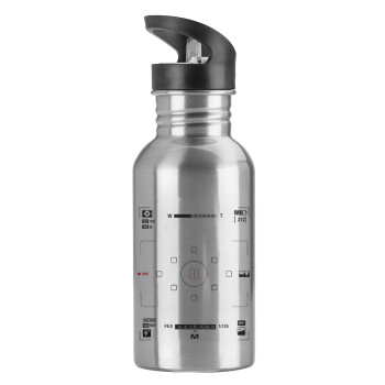 Camera viewfinder, Water bottle Silver with straw, stainless steel 600ml