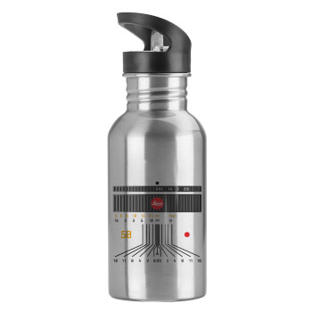 Leica Lens, Water bottle Silver with straw, stainless steel 600ml