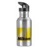Nikon, Water bottle Silver with straw, stainless steel 600ml
