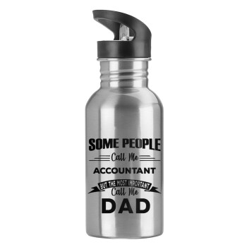 Some people call me accountant, Water bottle Silver with straw, stainless steel 600ml