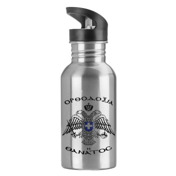 Ορθοδοξία ή Θάνατος, Water bottle Silver with straw, stainless steel 600ml