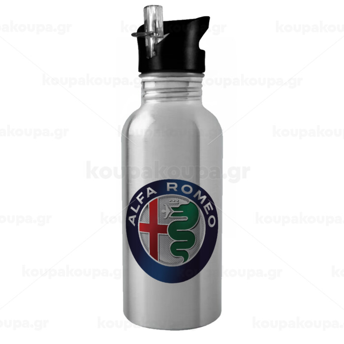 Alfa Romeo, Water bottle Silver with straw, stainless steel 600ml