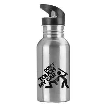 Don't touch my car, Water bottle Silver with straw, stainless steel 600ml