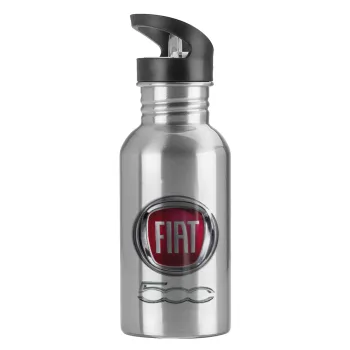 FIAT 500, Water bottle Silver with straw, stainless steel 600ml