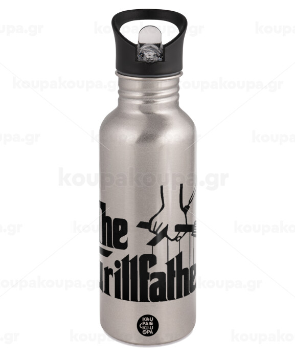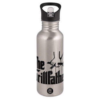 The Grill Father, Water bottle Silver with straw, stainless steel 600ml