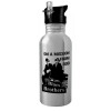 Blues brothers on a mission from God, Water bottle Silver with straw, stainless steel 600ml