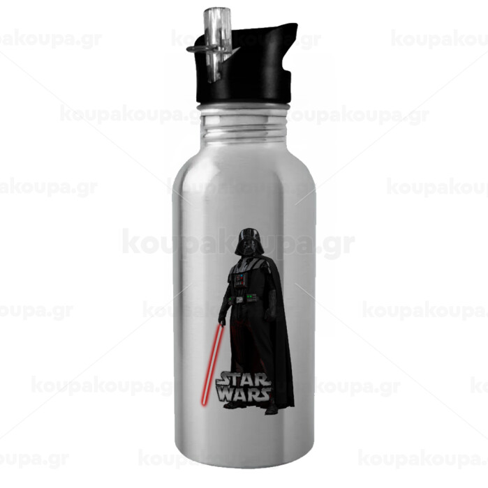 Darth vader, Water bottle Silver with straw, stainless steel 600ml