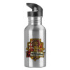 Gryffindor, Harry potter, Water bottle Silver with straw, stainless steel 600ml