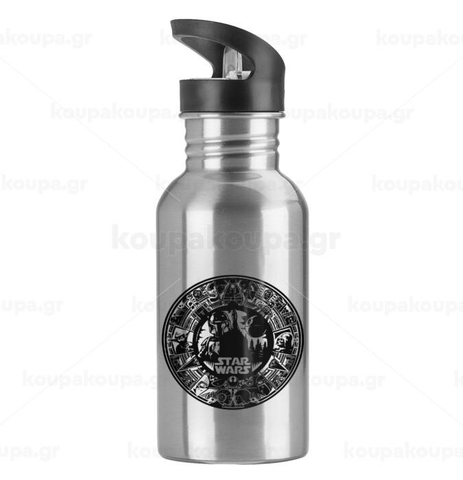 Star Wars Disk, Water bottle Silver with straw, stainless steel 600ml